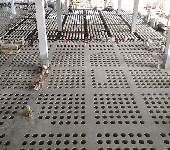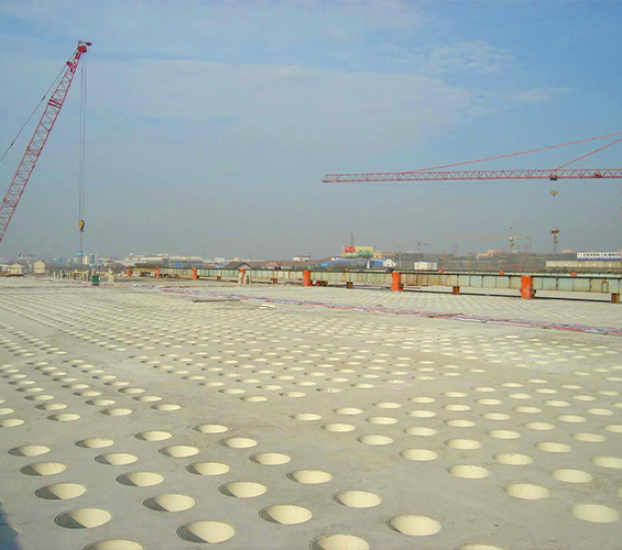 結(jié)構留孔:作為模板,澆筑混凝土后形成均勻圓形孔洞,構成奇氏板(華夫板) 結(jié)構。